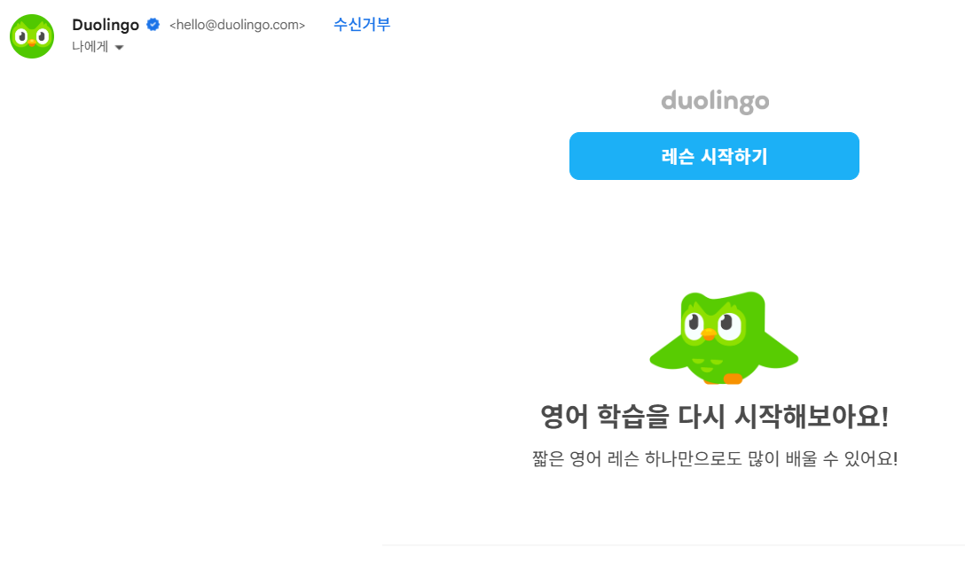 듀오링고는 그런 면에서 훌륭한 출발점이 될 수 있습니다. 타 학습 앱보다 부담이 훨씬 덜하고 지속이 가능했어요.