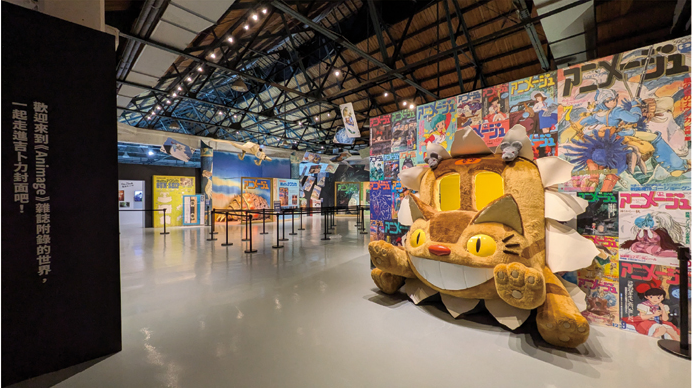 • 『아니메쥬』 잡지의 표지로 시작해, **'이웃집 토토로'**에 등장하는 고양이버스를 지나며 본격적인 전시가 시작됩니다.