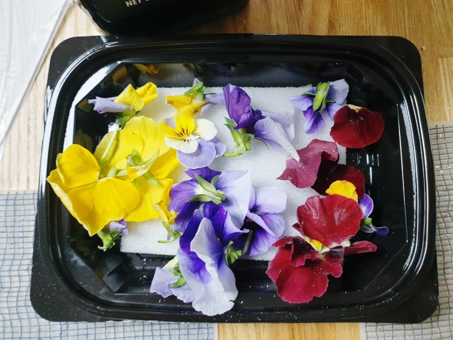 - 팬지 준비: 식용 가능한 팬지를 깨끗이 씻어 물기를 제거합니다. 꽃잎이 상하지 않도록 조심하세요.